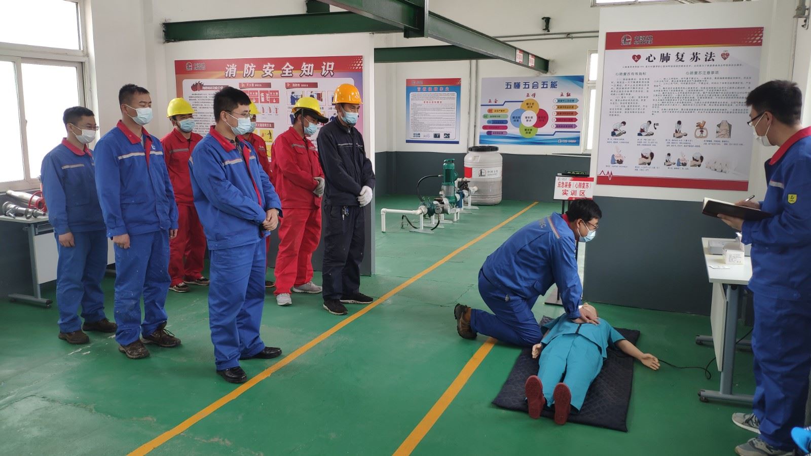 为做好《职业病防治法》宣传周工作,葫芦岛石油组织库站员工及施工单位人员,在油库实训基地开展心肺复苏专项培训,公司安全管理人员逐一讲解动作要领,库站员工及施工单位人员分组进行实操、交流操作技巧、竞技实训成果,切实提高应急处置能力。